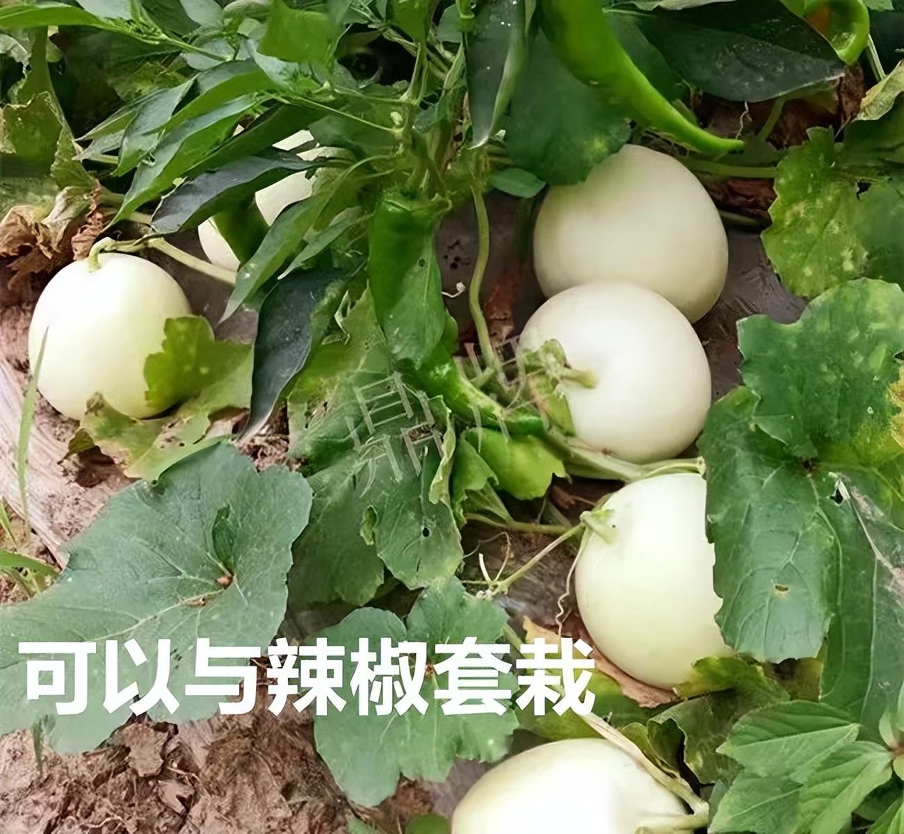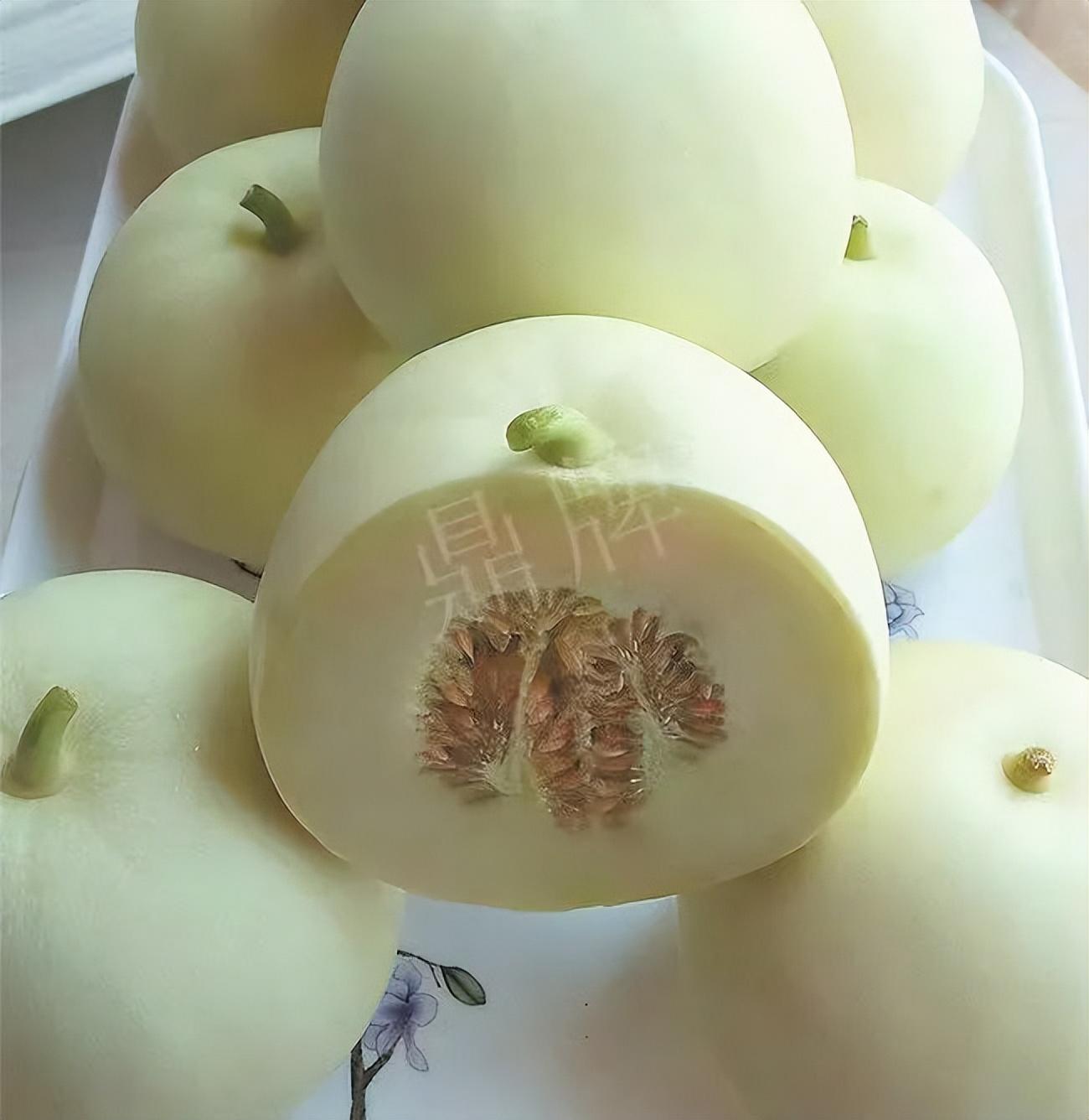 果實成熟后,果皮、果肉潤白,有一種天然質(zhì)感,看到就讓人喜歡;果肉厚達(dá)3厘米,這是薄皮甜瓜中難以見到的品種;連皮吃時能聽到“咔嚓”之聲,脆爽無比;而果肉又是酥酥的,甜度高達(dá)19度,口感既脆又酥又甜;單果重650克左右,坐果早而多,耐低溫、抗高溫能力都表現(xiàn)優(yōu)秀,連續(xù)坐瓜率高,多雨天氣不易裂瓜;棚室、露地都容易獲得豐產(chǎn)。