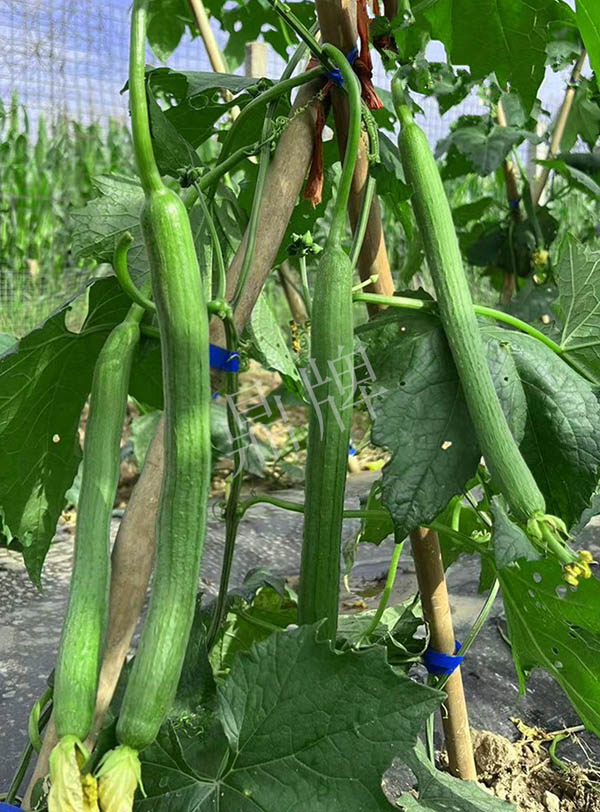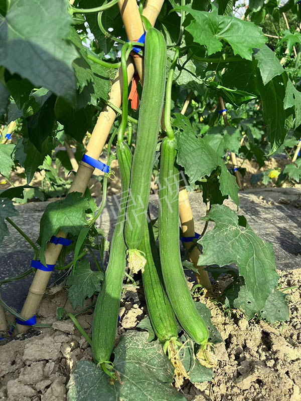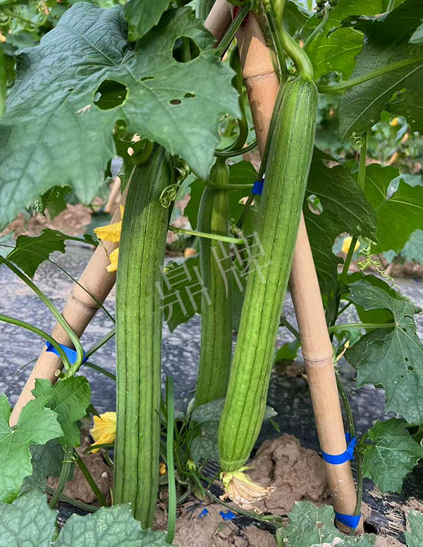 反交種子,極早熟,果皮更翠綠,坐果更多,產(chǎn)量更高;果長45~50厘米,果重約400克,品味好。用種:15袋/畝。